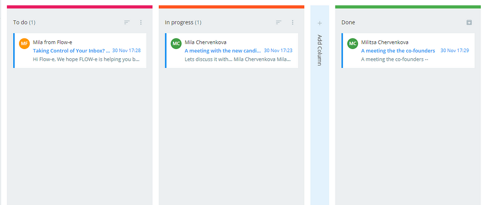 5. Visualize emails in Kanban-like boards — Visualization is the best way not to miss emails. Use Outlook/Gmail web application or plugin to create columns and boards. The best choice will be a tool that helps you manage answers to frequent email subjects, add to-dos, manage your calendar and meetings, delegate emails to your teammates and create separate tasks from the emails from within one single app.