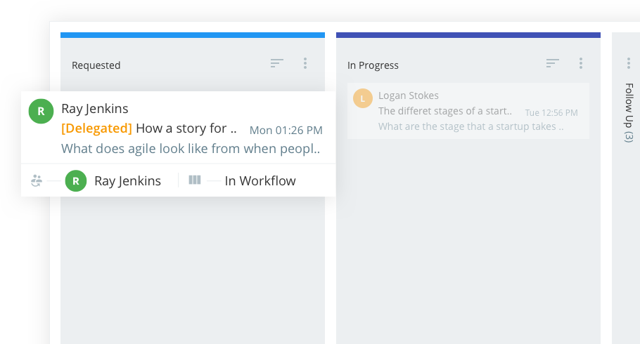 Designed for managers, Flow-e takes you to Inbox zero and beyond by turning your Outlook mailbox into a visual taskboard. Personal tasks and emails are now managed from your mailbox in a visual workflow, customized for your process.
