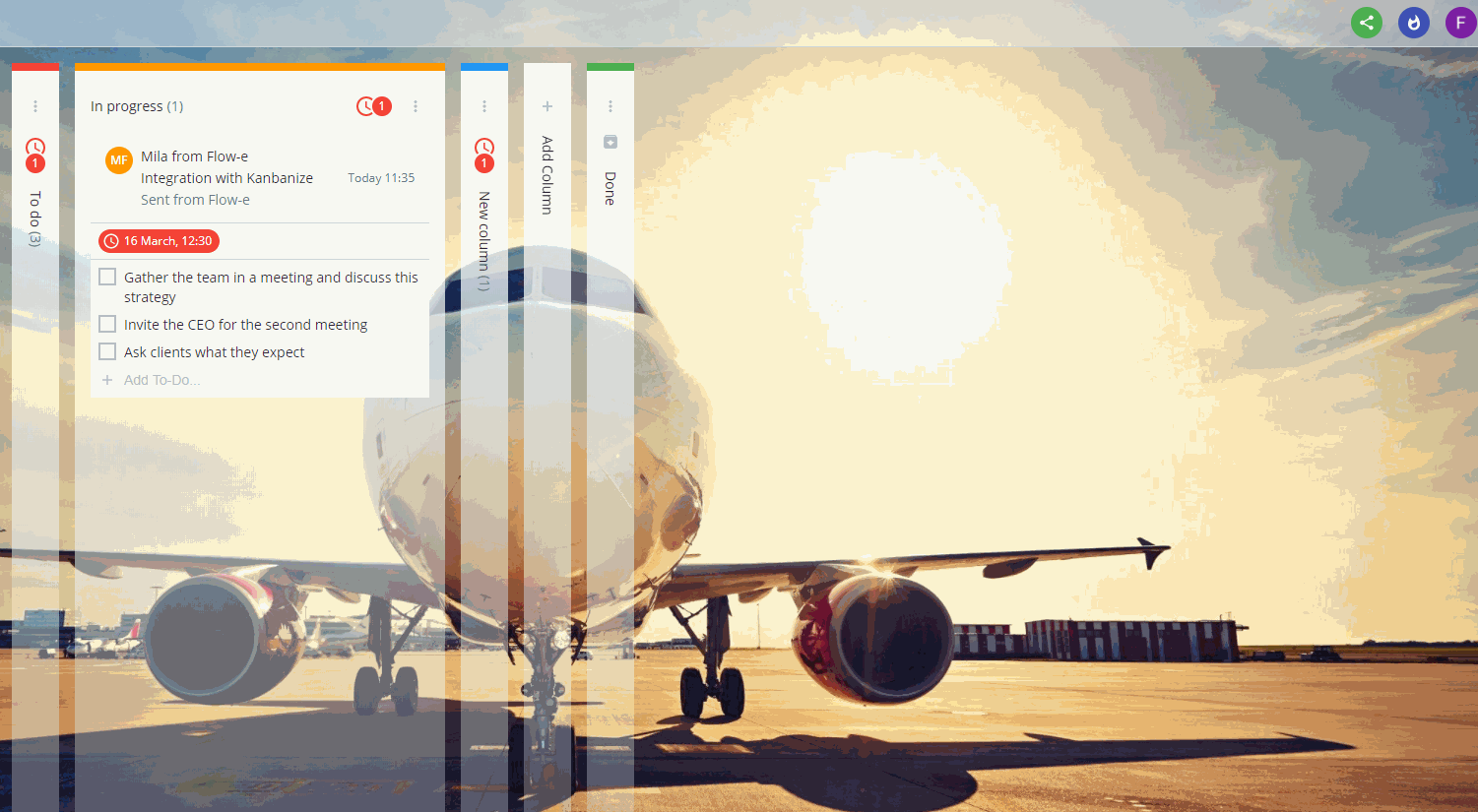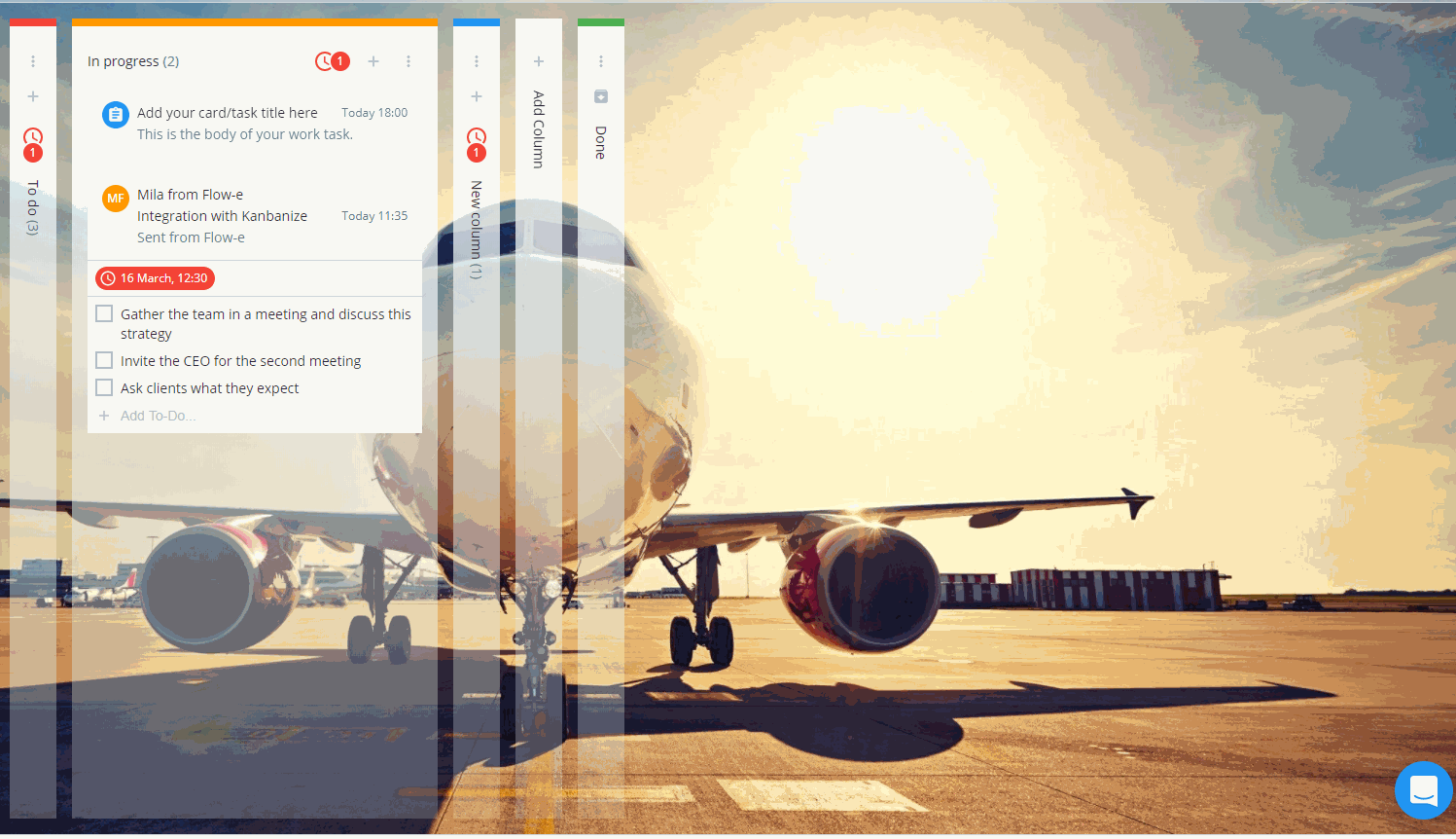 Flow-e is not just for tasks that come from emails. By creating standalone cards in the columns of your workflow, you can map tasks that did not come from the email feed, but entirely from somewhere else.