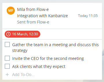 Here is how a simple personal Kanban card that comes from an email looks in Flow-e: