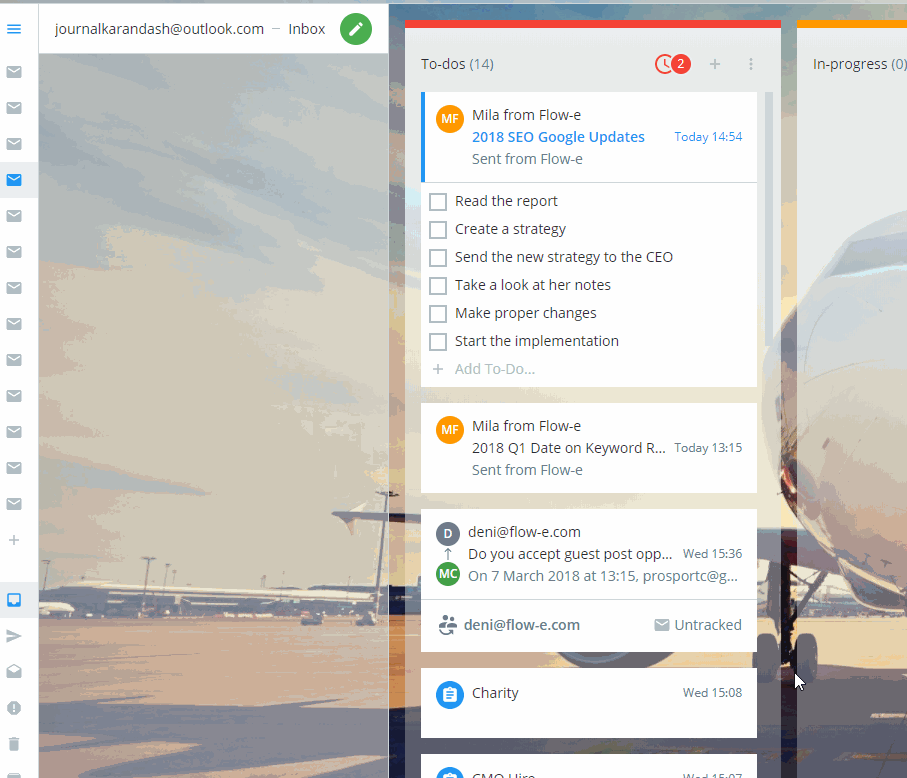 Now that you have gone through your email feed and you have already moved and created all the task in the “To-do” column, we have to pull one card and move it to the next column “In-progress.”