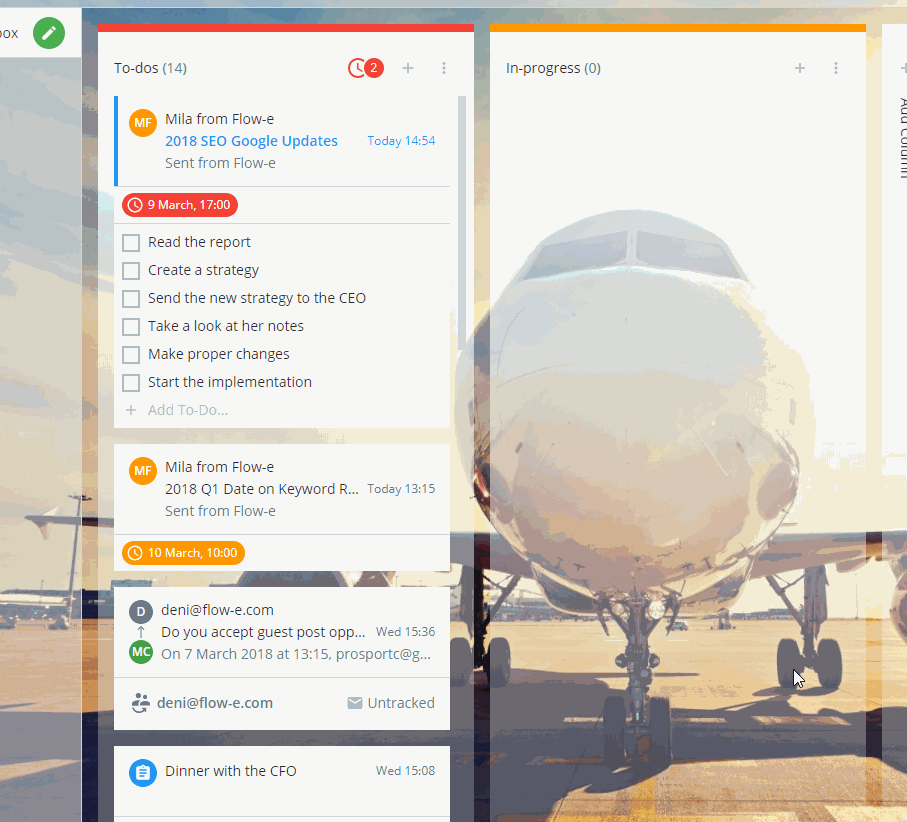 The process with this scenario is simple. If you spot an email or a task which should be handled by someone else – delegate it right away and move it from feed/to-do to the “Delegation” column.