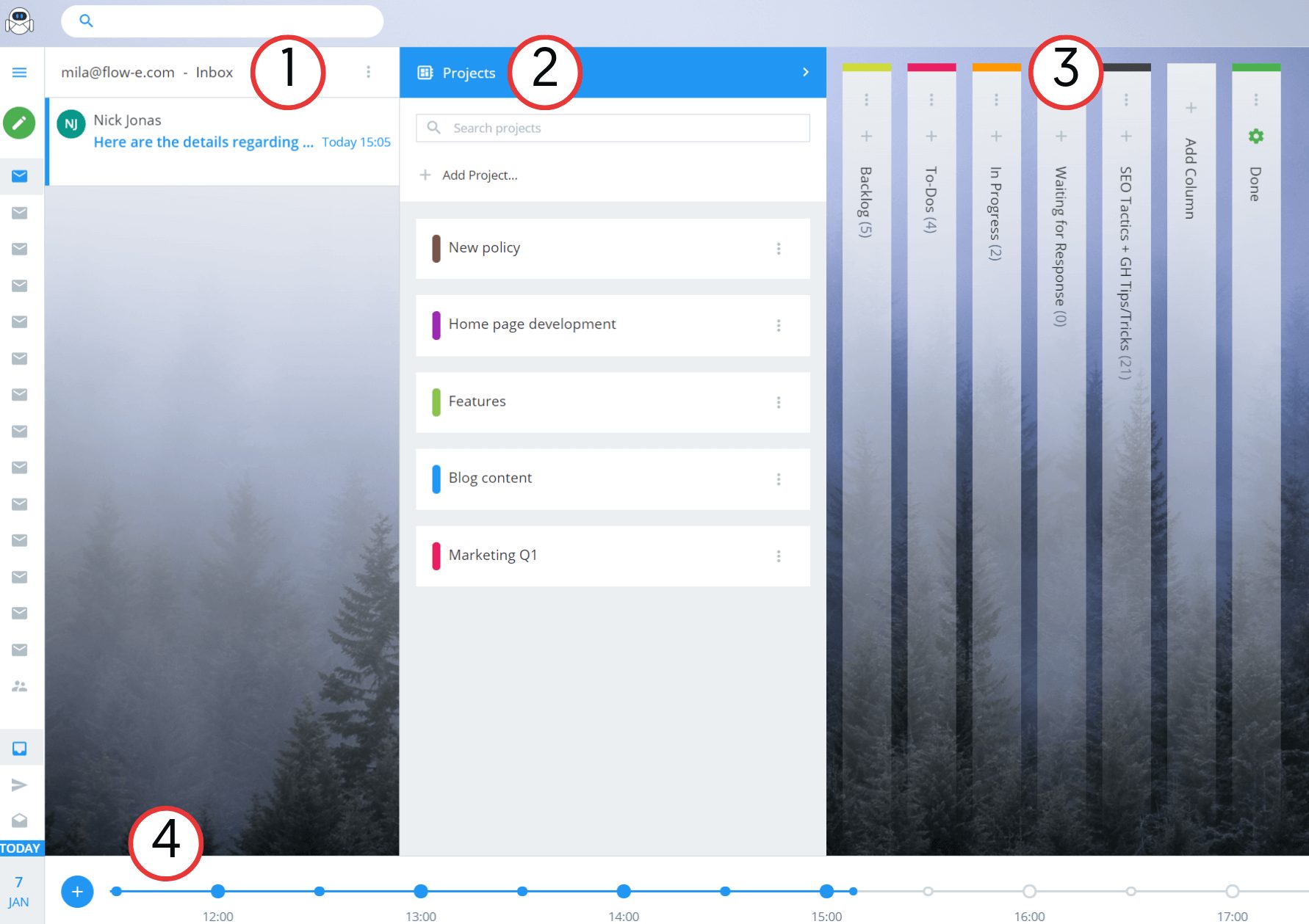 For example, Flow-e, adds a visualization layer on top of your existing inbox, which eliminates the need to constantly switch between apps or browser tabs to see all of your projects-related tasks and data.